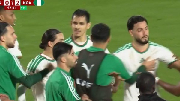 ووقعت مشادة كلامية بين اللاعبين الجزائريين والنيجيريين بعد انتهاء المباراة.
